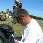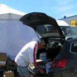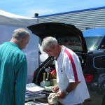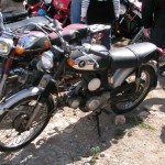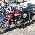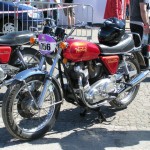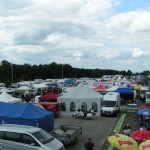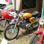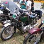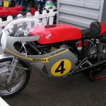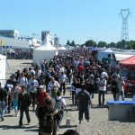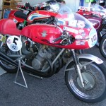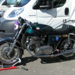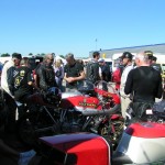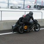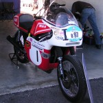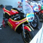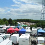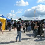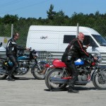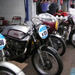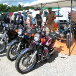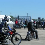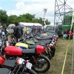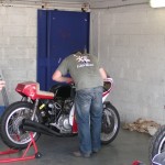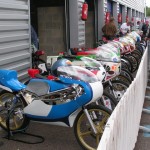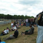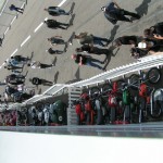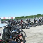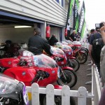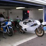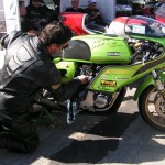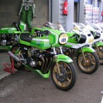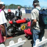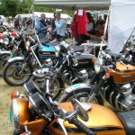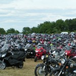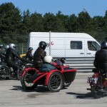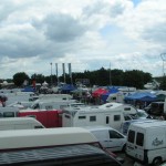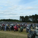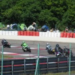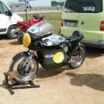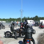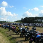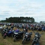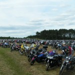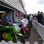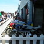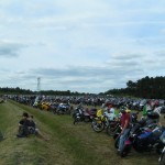 Samedi matin arrivée au circuit vers 9h 30. Accès facile, bien guidés parking aisé avec beaucoup de place. Les autos d’un côté, les motos de l’autre et dans les prés un bivouac à la manière des concentres des 70′s. Il y a déjà du monde et des motos partout, des milliers, un parc étonnant.
