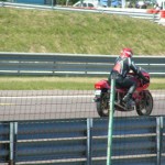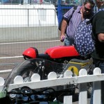 D’emblée, lorsqu’on pénètre sur ce circuit, ce qui frappe c’est le calme bon enfant qui règne. Pas un éclat de voix, que des sourires, les gens sont là pour prendre du bon temps, c’est certain. En deux jours nous n’avons pas vu un gars aviné, pas une enguelade, pas une bousculade. La « sécurité » est là visible, pas agressive. Dans les stands et le paddock il y a du monde partout, les participants se frayent un passage avec leur moto au milieu des curieux, tout ce petit monde se ménage, s’écarte et ça se passe bien. Cela aussi c’est étonnant !