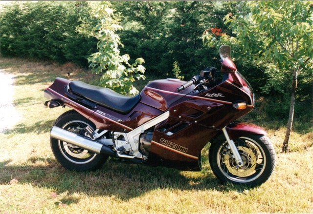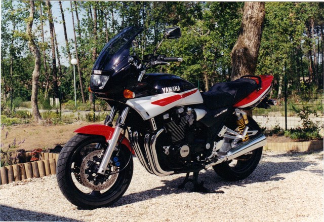 Des débuts en P50 puis des 125. Augmentation progressive de la cylindrée. Une interruption de 1982 à 1986 puis l’attelage pour trimballer le petit Guillaume. Nous sommes déjà dans l’ère des motos modernes, les années 80 avec la FJ 1100 de 125 cv un avion de chasse à l’époque… Alors arrive le temps de la moto plaisir, roulant peu désormais, j’ai envie de motos que je trouve très belles : la gsxf, la xjr, les Triumph…